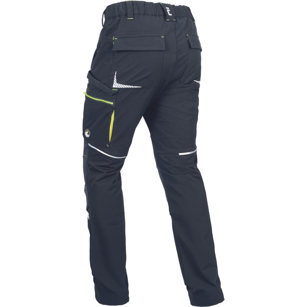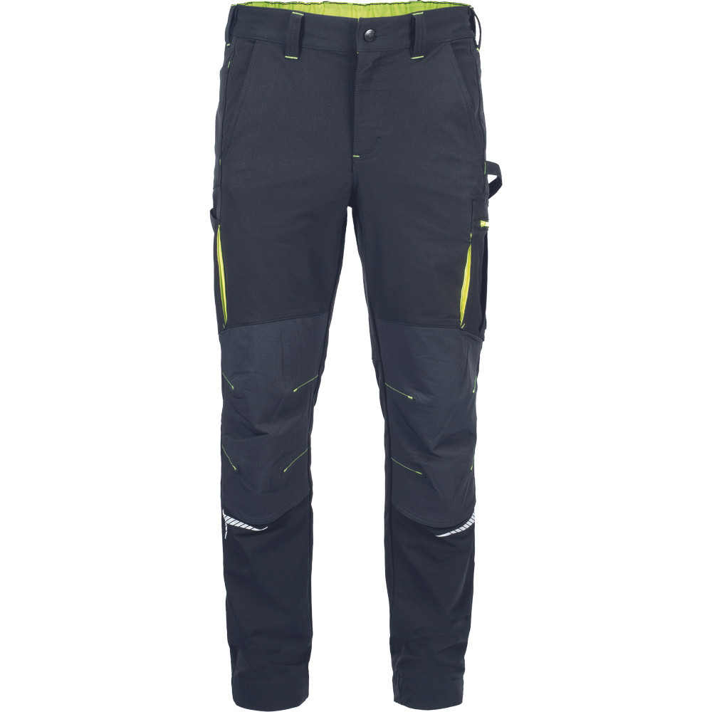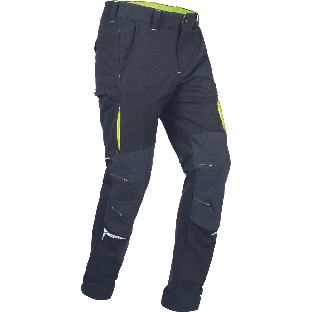 kényelmes férfi nadrág rugalmas anyagból • jól láthatósági és fényvisszavető elemekkel kiemelve • Oxford poliészter erősítés a térdrészen, térdvédő betétek behelyezésének lehetőségével • 2 elülső zseb • 2 hátsó zseb • 2 többfunkciós combzseb