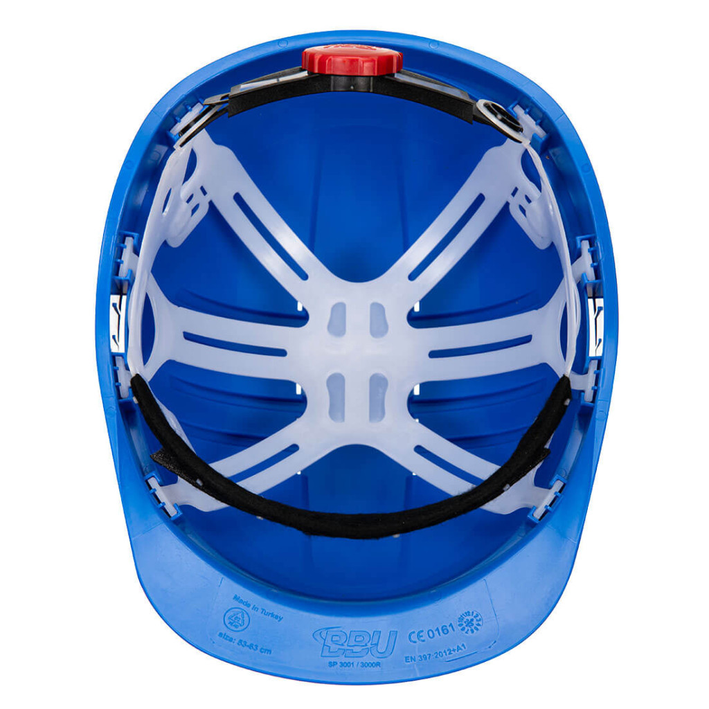 - 6 pontos műanyag felfüggesztésű heveder a viselési kényelem, a biztonság és a könnyű tisztítás érdekében