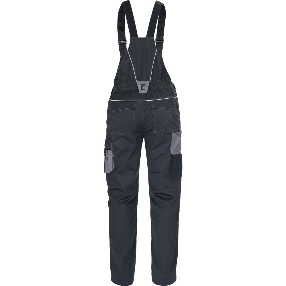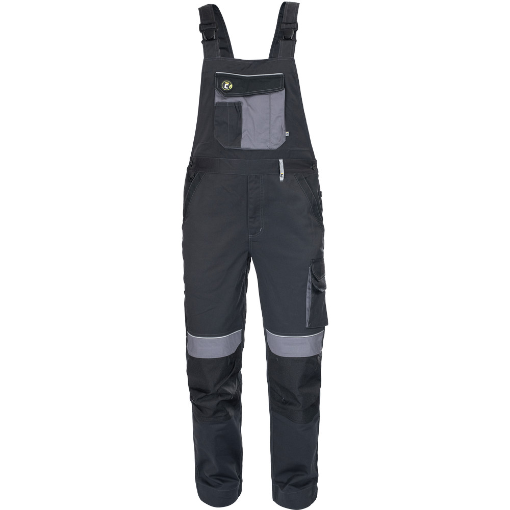 • férfi munkás mellesnadrág rugalmas derékpánttal • 2 oldalzseb • 1 combzseb • 1 mellzseb tépőzárral • 2 hátsó zseb tépőzárral • térderősítés opcionálisan behelyezhető térdpárnával • fényvisszavető részletek • állítható szárhossz